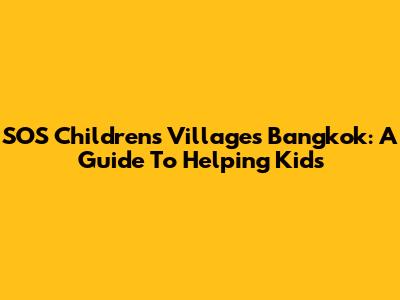 SOS Children's Villages Bangkok: A Guide To Helping Kids