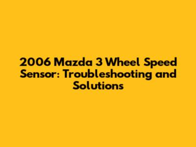 The wheel speed sensor is a vital component of your 2006 Mazda 3's safety system. By understanding its function, recognizing the symptoms of a faulty sensor, and following the troubleshooting and replacement steps outlined in this article, you can keep your Mazda 3 running smoothly and safely. Remember, if you're not comfortable working on your car, it's always best to consult a qualified mechanic. Drive safe!
