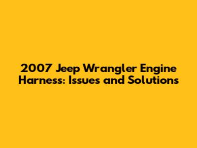 Common Issues with the 2007 Jeep Wrangler Engine Harness