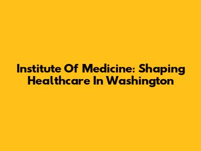 Institute Of Medicine: Shaping Healthcare In Washington