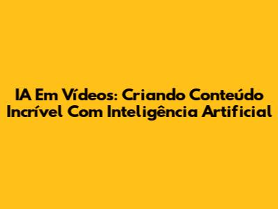 IA Em Vídeos: Criando Conteúdo Incrível Com Inteligência Artificial