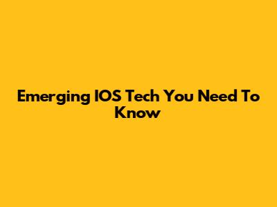 Emerging IOS Tech You Need To Know
