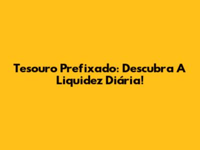 Tesouro Prefixado: Descubra A Liquidez Diária!