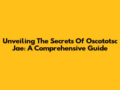 Unveiling The Secrets Of Oscototsc Jae: A Comprehensive Guide