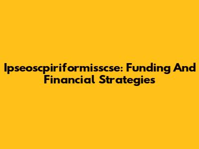 Ipseoscpiriformisscse: Funding And Financial Strategies