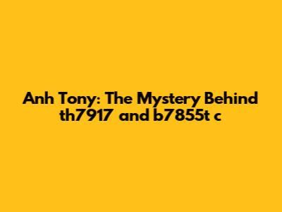 Let's dive into the intriguing world surrounding Anh Tony, specifically focusing on the mysterious strings th7917 and b7855t c. What could these possibly mean? Are they secret codes, inside jokes, or perhaps just random keyboard smashing? Whatever they are, they've piqued our curiosity, and we're going to explore some potential explanations and scenarios. Get ready, guys, because this is going to be a wild ride!