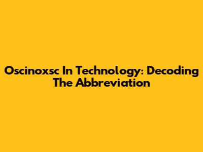Oscinoxsc In Technology: Decoding The Abbreviation
