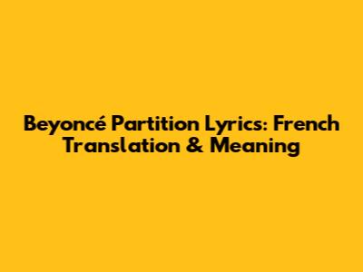 Beyoncé Partition Lyrics: French Translation & Meaning