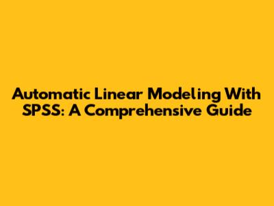 Automatic Linear Modeling With SPSS: A Comprehensive Guide