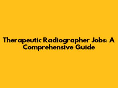Therapeutic Radiographer Jobs: A Comprehensive Guide