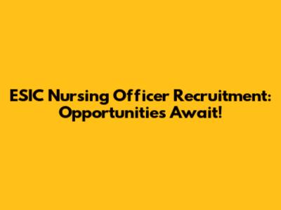ESIC Nursing Officer Recruitment: Opportunities Await!