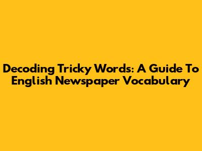 Decoding Tricky Words: A Guide To English Newspaper Vocabulary