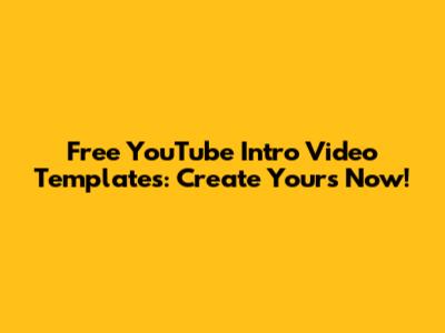 Free YouTube Intro Video Templates: Create Yours Now!