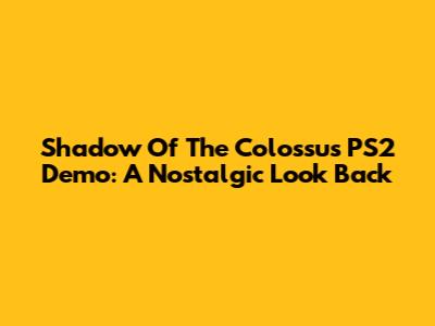 Shadow Of The Colossus PS2 Demo: A Nostalgic Look Back