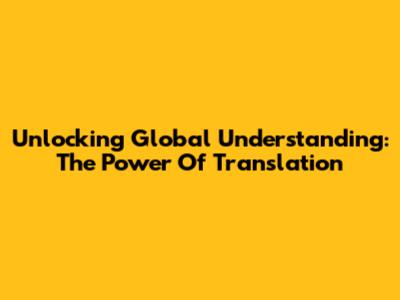 Unlocking Global Understanding: The Power Of Translation