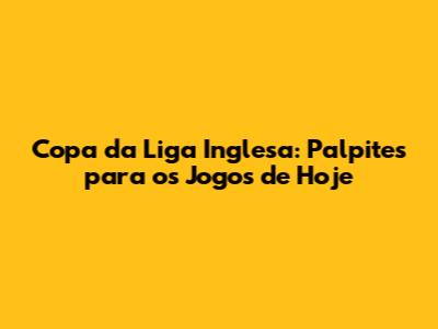 Copa Da Liga Inglesa: Palpites Para Os Jogos De Hoje