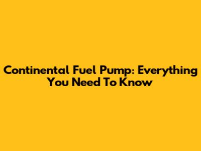 Continental Fuel Pump: Everything You Need To Know