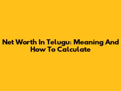 Net Worth In Telugu: Meaning And How To Calculate
