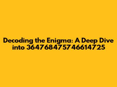 Hey guys, let's dive headfirst into the fascinating world of 364768475746614725. Okay, I get it, the number itself might seem a bit... well, random. But trust me, every number, especially one like this, has a story to tell. We're going to embark on a journey of discovery, exploring what this number could possibly represent, and, more importantly, what we can learn from it. Think of it as a numerical treasure hunt! We'll be using all our detective skills to uncover the secrets hidden within this string of digits. Are you ready to crack the code? Let's get started!