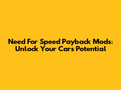 Need For Speed Payback Mods: Unlock Your Car's Potential