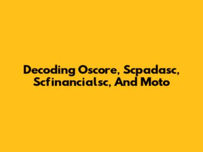 Decoding Oscore, Scpadasc, Scfinancialsc, And Moto