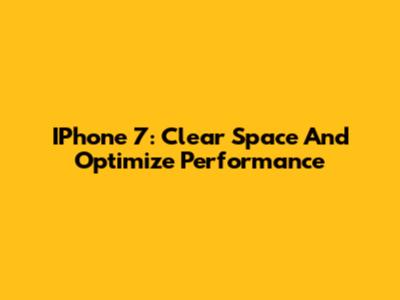 IPhone 7: Clear Space And Optimize Performance