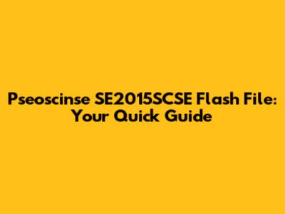 Why You Might Need the Pseoscinse SE2015SCSE Flash File