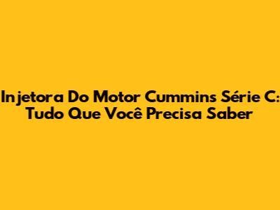 Injetora Do Motor Cummins Série C: Tudo Que Você Precisa Saber