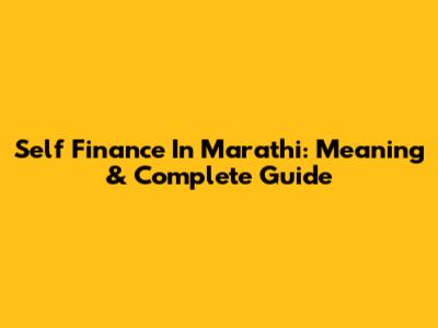 Self Finance In Marathi: Meaning & Complete Guide