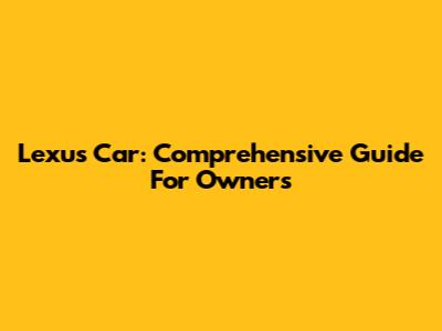 Lexus Car: Comprehensive Guide For Owners