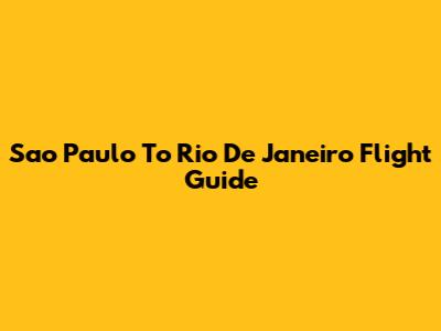 Sao Paulo To Rio De Janeiro Flight Guide