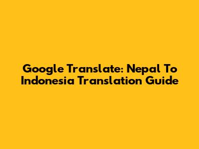 Google Translate: Nepal To Indonesia Translation Guide