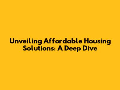 Unveiling Affordable Housing Solutions: A Deep Dive