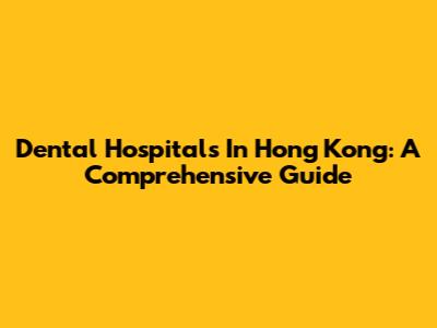 Dental Hospitals In Hong Kong: A Comprehensive Guide