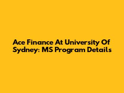 Ace Finance At University Of Sydney: MS Program Details