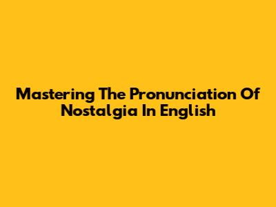 Mastering The Pronunciation Of 'Nostalgia' In English