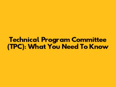 Technical Program Committee (TPC): What You Need To Know