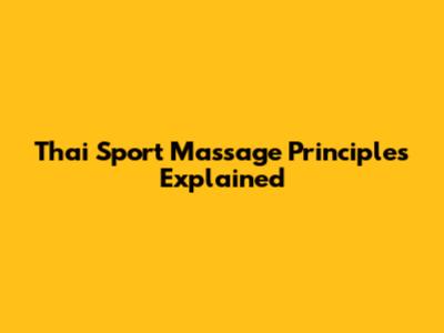 Thai Sport Massage Principles Explained