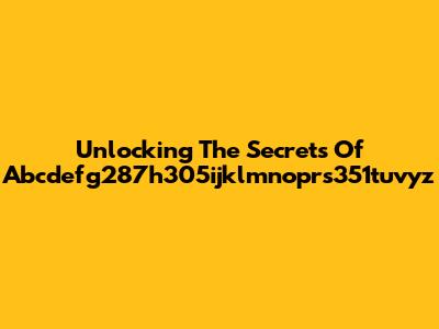 Unlocking The Secrets Of Abcdefg287h305ijklmnoprs351tuvyz