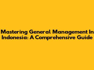 Mastering General Management In Indonesia: A Comprehensive Guide