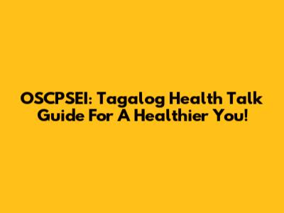 OSCPSEI: Tagalog Health Talk Guide For A Healthier You!