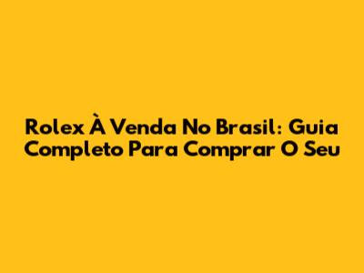 Rolex À Venda No Brasil: Guia Completo Para Comprar O Seu
