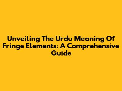 Unveiling The Urdu Meaning Of Fringe Elements: A Comprehensive Guide
