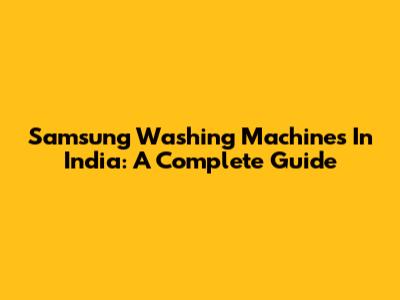 Samsung Washing Machines In India: A Complete Guide