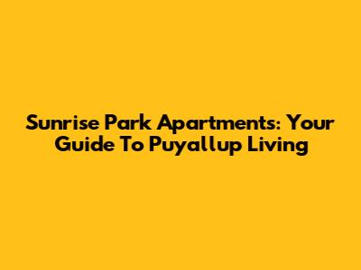 Sunrise Park Apartments: Your Guide To Puyallup Living