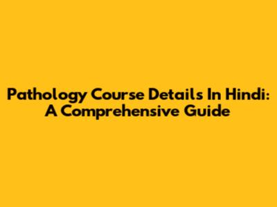Pathology Course Details In Hindi: A Comprehensive Guide