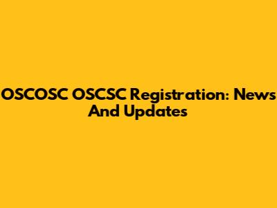 OSCOSC OSCSC Registration: News And Updates