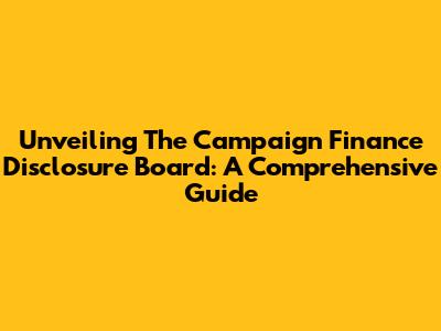 Unveiling The Campaign Finance Disclosure Board: A Comprehensive Guide