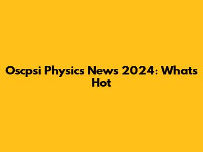 Oscpsi Physics News 2024: What's Hot