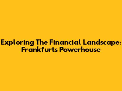 Exploring The Financial Landscape: Frankfurt's Powerhouse